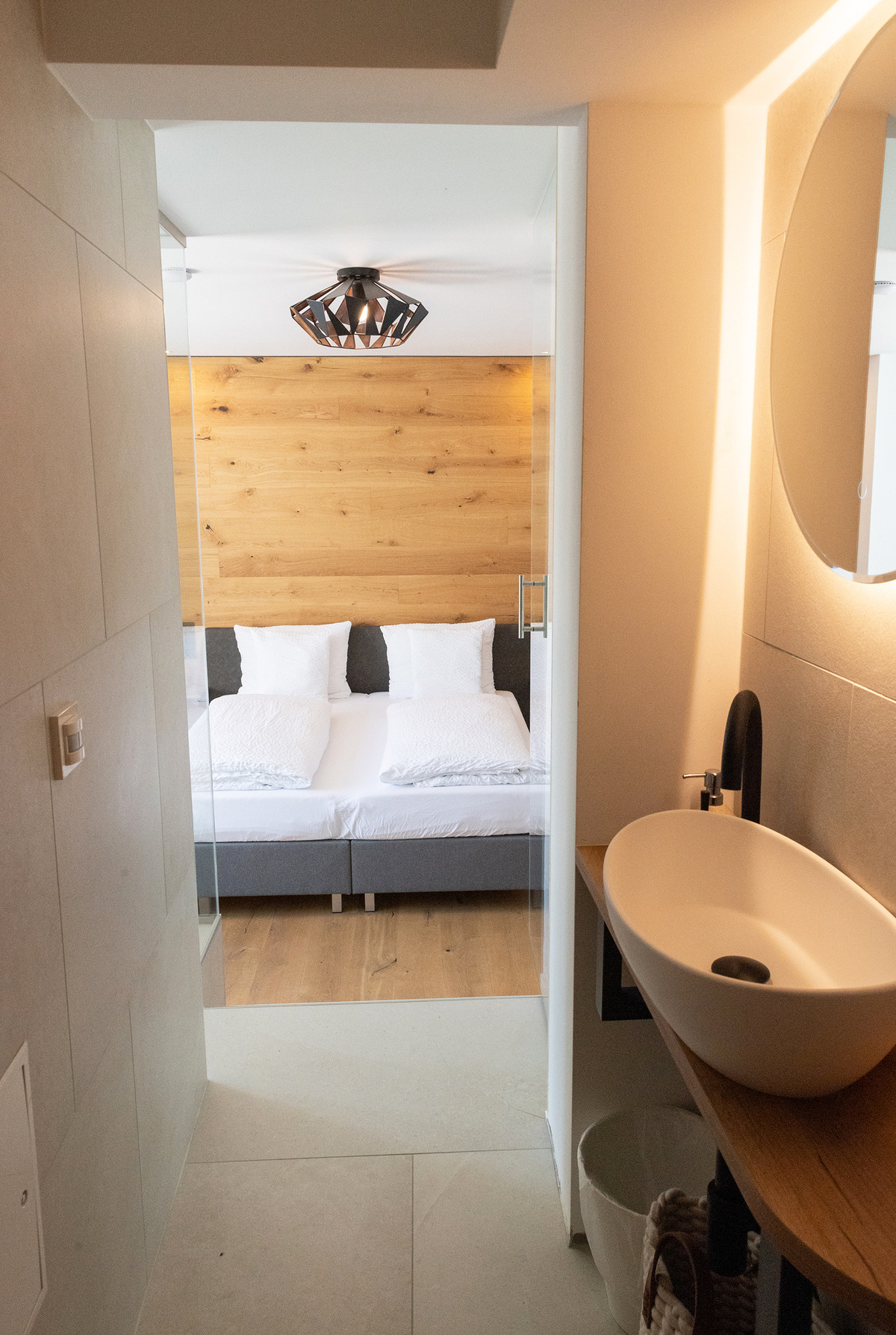 Einzel- bzw. Doppelzimmer der besonderen Art mit GlasCube im Raum und optionaler Verbindung zum studioAppartment Nr.8.